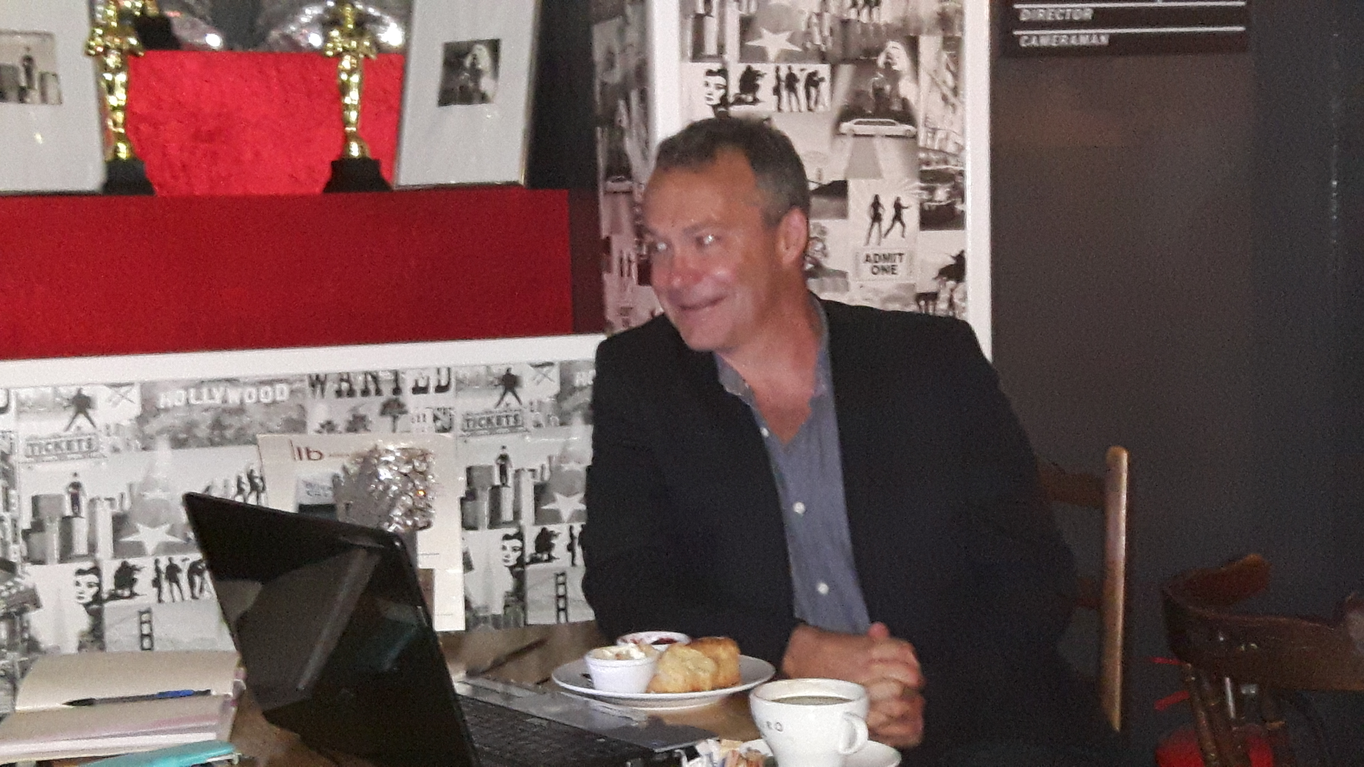 Alex was delightfully open about his experiences in publishing and happy to answer the questions that were thrown his way – and these were many and various. Then, while he ate his cream tea (look closely at the photo…) he set the group an exercise: